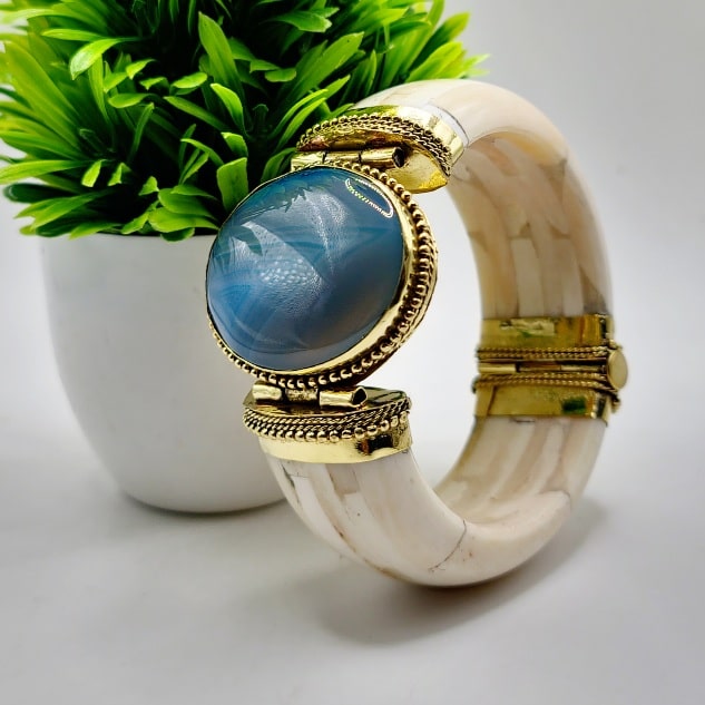The kada’s design is sleek and modern, making it easy to pair with a variety of outfits. Its subtle sparkle from the embedded crystals creates a stunning effect that adds a refined touch to both casual and formal wear. The Crystal Kada’s understated yet eye-catching design makes it a versatile piece that can be worn on its own or stacked with other bangles for a more dramatic statement.
