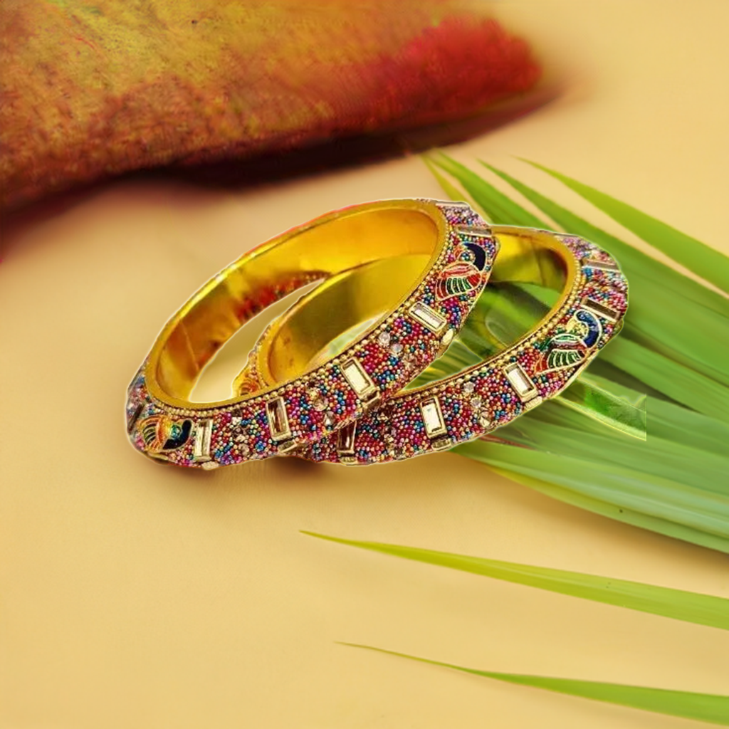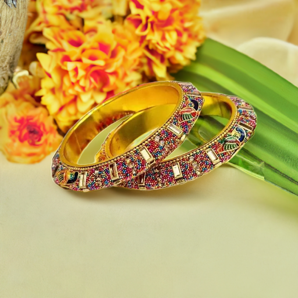 Embrace the allure of vibrant plumage with the Peacock Multicolor Bangles collection. Each bangle is a unique expression of the peacock's beauty, allowing you to adorn yourself with the mesmerizing charm of nature's palette. Step into a world of color, elegance, and grace with these exquisite accessories.
