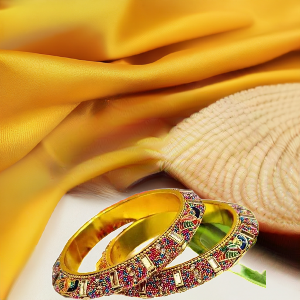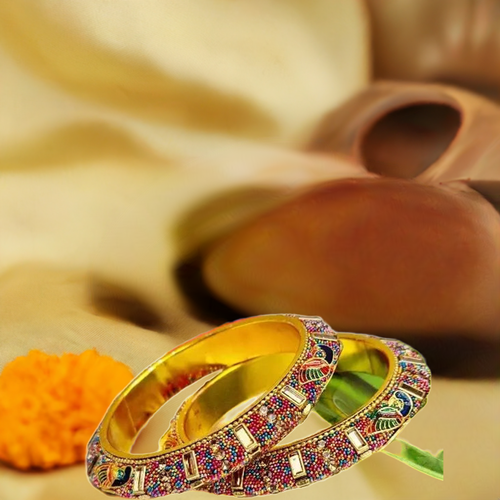Crafted with precision, these bangles often incorporate a mix of materials, including stones, beads, and metallic embellishments, enhancing the overall aesthetic. The collection caters to diverse tastes, offering a range of designs from bold statement pieces to delicately adorned bangles, ensuring there's a perfect match for every style preference.
