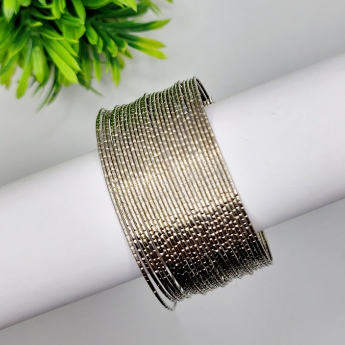 The Silver Bells Kada is a unique and enchanting piece of jewelry that combines elegance with a playful twist. Designed with small, delicately crafted bells, this kada creates a soft, melodious sound with every movement, adding a charming touch to your style. The silver material ensures that the kada is not only beautiful but also durable, making it perfect for everyday wear or special occasions. Its timeless design allows it to complement a wide range of outfits, from traditional sarees to modern dresses. The soft jingle of the bells adds a subtle yet elegant flair to any attire, making it a perfect accessory for women who appreciate both beauty and functionality. The Silver Bells Kada is lightweight and comfortable, ensuring it can be worn for long hours without any discomfort. Its simple yet elegant design allows it to be worn alone for a minimalistic look or stacked with other bangles for a more dramatic effect. Ideal for festive occasions, family gatherings, or even casual outings, this kada effortlessly elevates your look. The combination of classic silver and the playful sound of the bells makes it a standout piece in any jewelry collection. Whether you are attending a wedding, a party, or a cultural event, the Silver Bells Kada adds a touch of sophistication and fun to your ensemble. It also makes for a thoughtful gift for someone special, as its timeless appeal is sure to be appreciated by anyone who values unique and elegant jewelry. Add this beautiful kada to your collection and enjoy the graceful jingling of silver bells wherever you go.