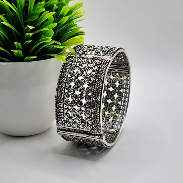The kada’s design highlights the beauty of the stones, making it a versatile accessory that can be paired with both casual and formal outfits. Whether you're wearing it for a special occasion or as part of your daily ensemble, the Stone Glow Kada adds a radiant touch that enhances your overall look. The stones, known for their natural glow, catch the light in a way that gives the bangle an ethereal and captivating shine, making it an ideal choice for those who love unique, nature-inspired jewelry.